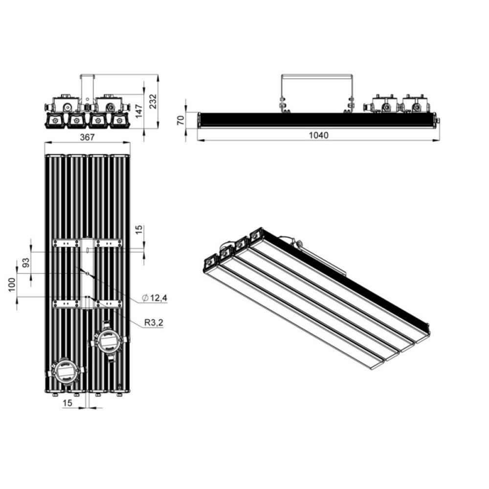 - Мощность 400 Вт – обеспечивает яркое освещение больших площадей, заменяя устаревшие натриевые светильники мощностью до 1000 Вт.