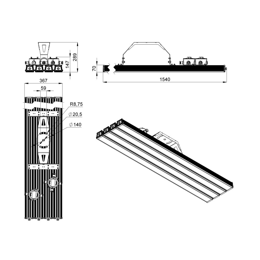 Световой поток: 23100 Лм. Высокая светоотдача гарантирует отличную освещенность рабочих зон при минимальном количестве светильников.